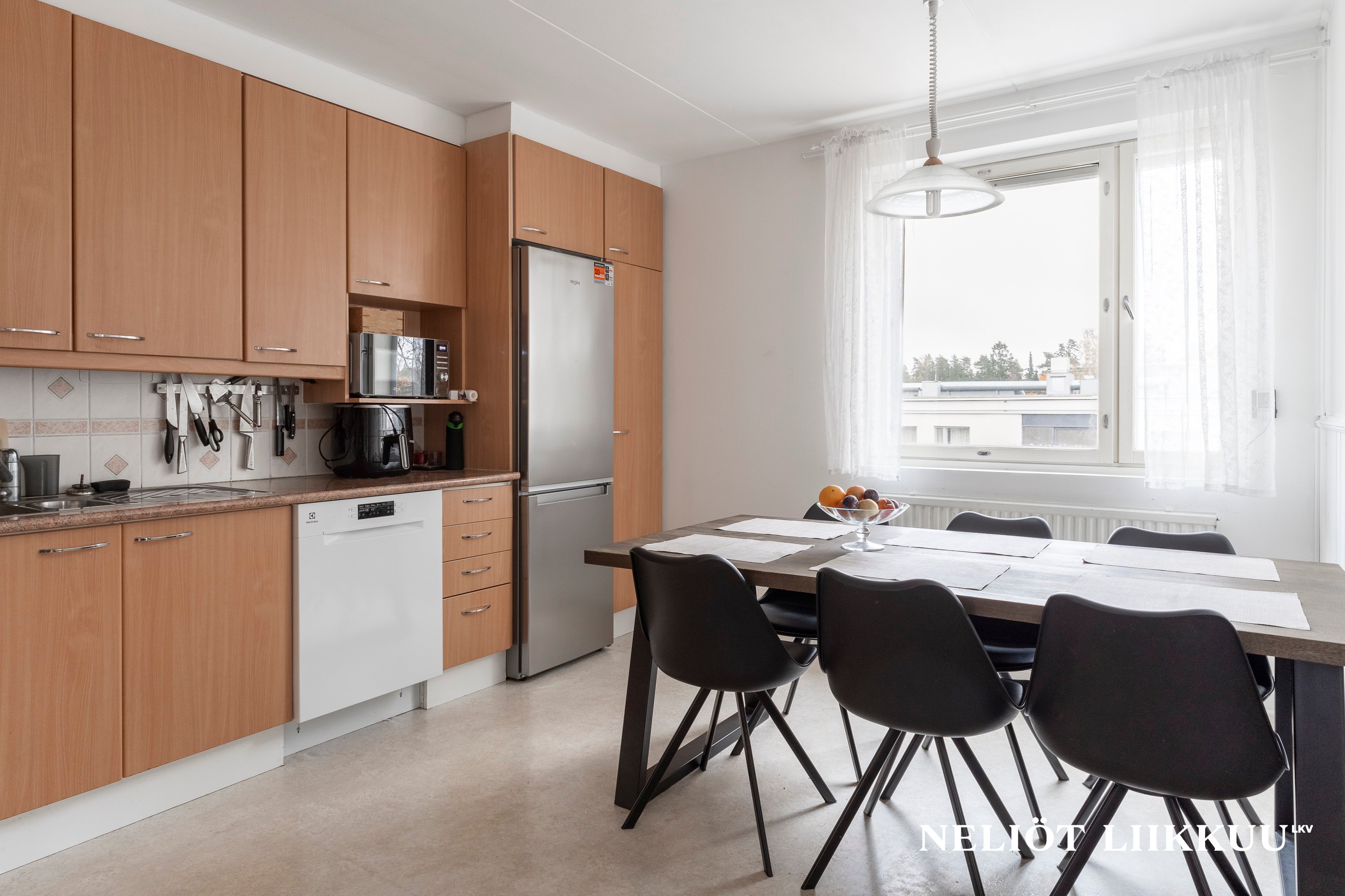 - Jääkaappipakastin, liesi, liesituuletin, ja astianpesukone
