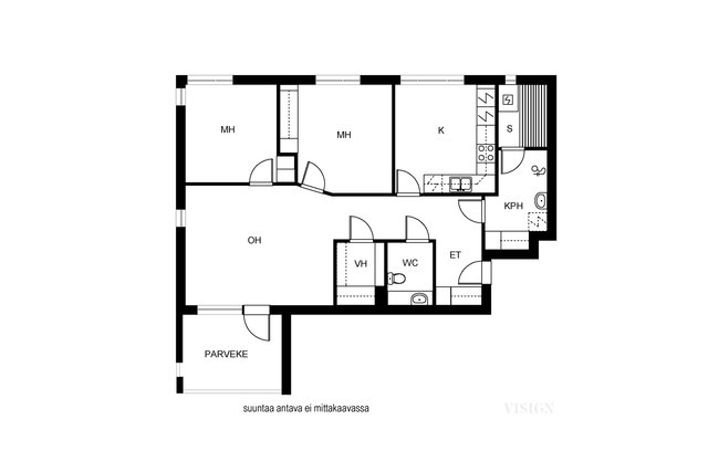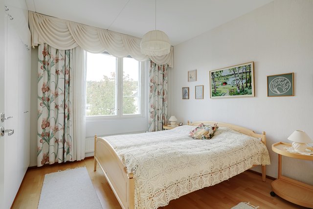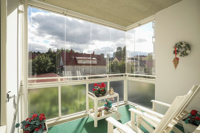 - Läpitalon päätyhuoneisto, josta näkymät kolmeen suuntaan. Lasitettu parveke sisäpihalle.