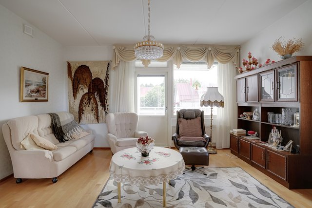 - Parkettilattia, tapetoidut/maalatut seinät. Kulku parvekkeelle.