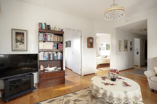 Asunnon 78 neliötä on jaettu käytännöllisesti kahteen makuuhuoneeseen, olohuoneeseen ja keittiöön, joissa on kauniit parkettilattiat. Kylpyhuoneessa on  laatoitukset ja oma sauna tarjoaa rentouttavia hetkiä.