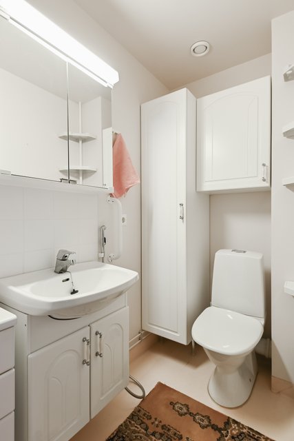 - Suihku, pesukoneliitäntä, peilikaappi, pesuallas, ja bidee-suihku