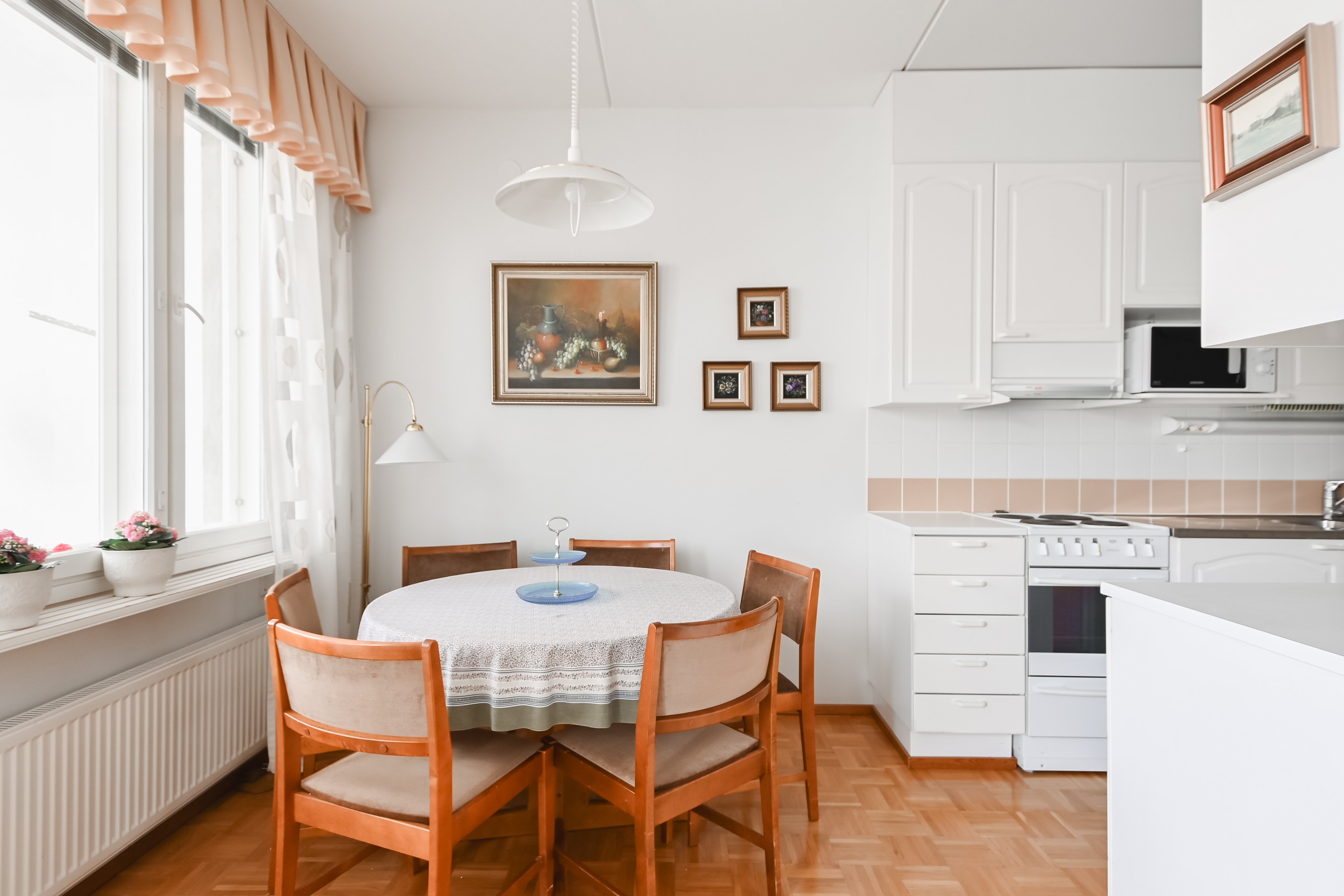 - Jääkaappipakastin, liesi, liesituuletin, ja mikroaaltouuni