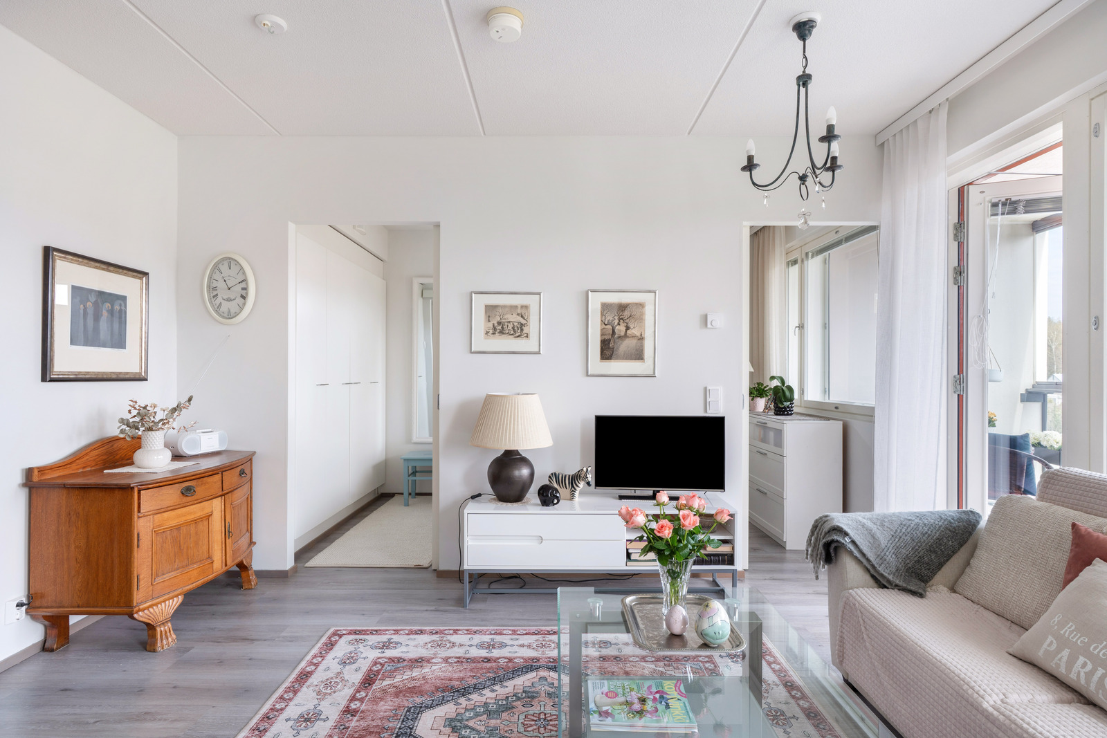 Huoneisto sijaitsee talon ylimmässä kerroksessa, mikä takaa rauhaa ja esteettömät näkymät. Pohjaratkaisu on toimiva ja tekee 42,5 neliömetristä huomattavasti tilavamman tuntuisen. Kodin ehdoton kruunu on iso parveke, joka on täydellinen paikka aamukahville sekä oleskeluun aikaisesta keväästä pitkälle syksyyn.