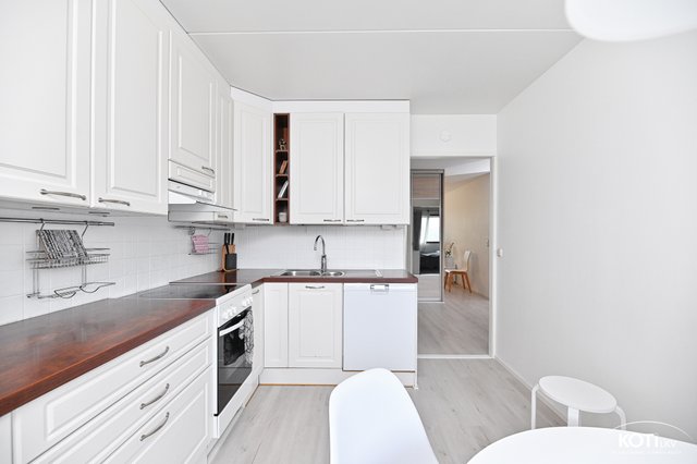 Keittiö on remontoitu laadukkailla Puustellin kalusteilla, ja sinne mahtuu mukavasti ruokapöytä. Kylpyhuone on taloyhtiön toimesta uusittu vuonna 2017, ja siellä on mukavuutta lisäävä sähköinen lattialämmitys. Molemmissa makuuhuoneissa Inarian vaatekaapit, jotka tarjoavat runsaasti säilytystilaa.