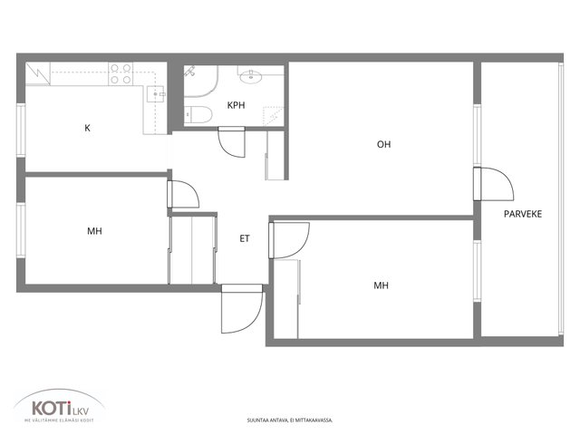 - Ei tarkistusmitattu. Pinta-alat saattavat tämän ikäisissä kohteissa (yhtiö rekisteröity ennen 01.01.1992) poiketa olennaisestikin asuinrakennusten nykyisten mittaustapojen ja standardien (SFS 5139) mukaan laskettavasta asuintilojen pinta-alasta. Pinta-ala voi siis olla edellä mainittua pienempi tai suurempi.