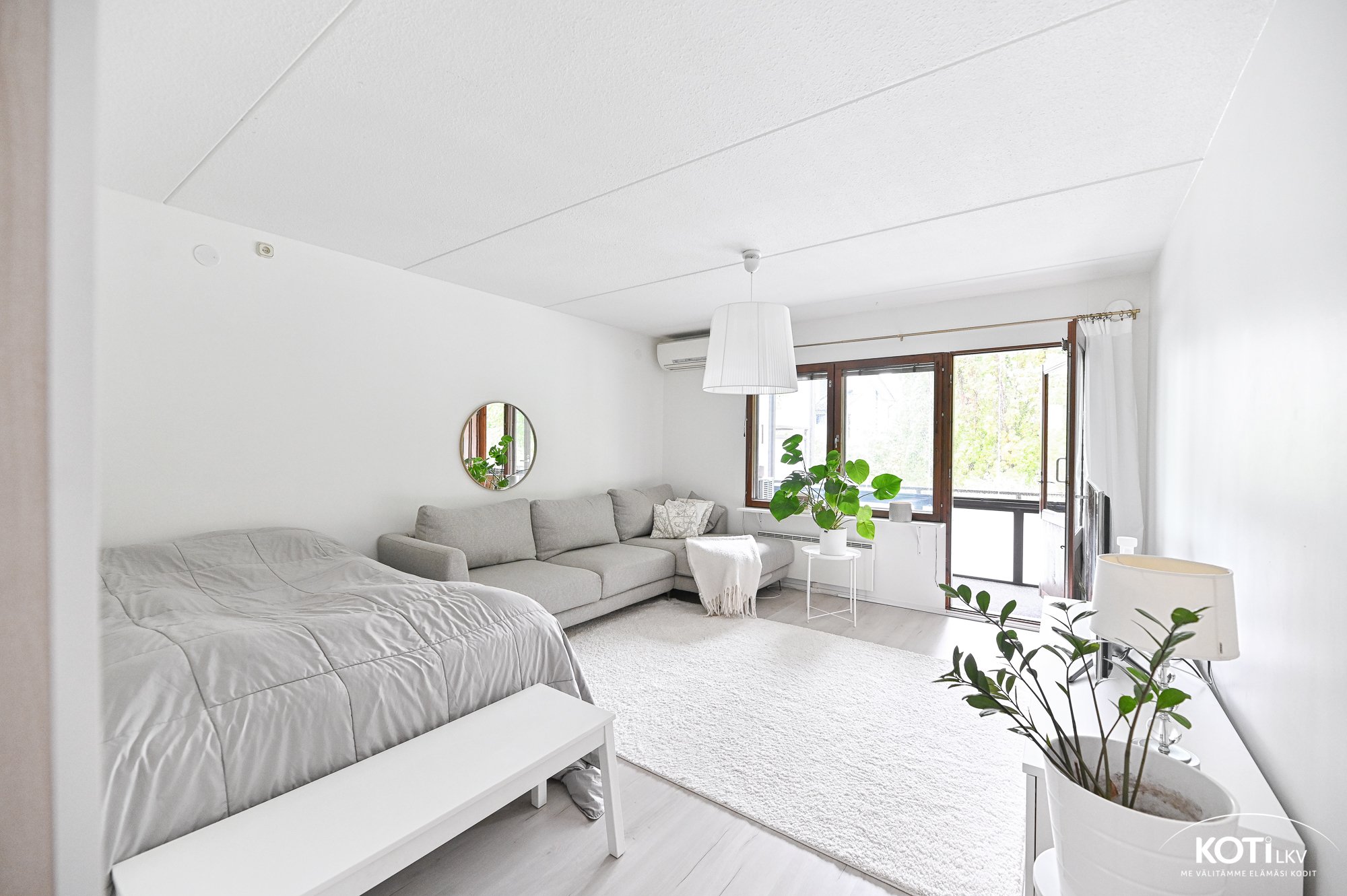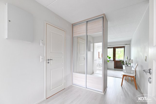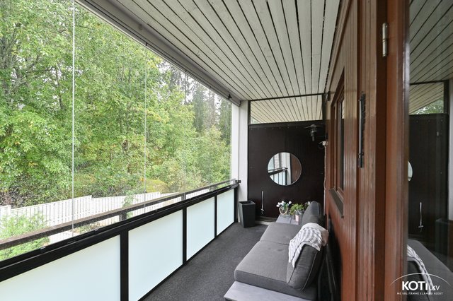 Valoisa ja tilava läpitalon huoneisto odottaa uusia asukkaitaan rauhallisella Laaksolahden alueella. Tämä 72,5 neliöinen asunto sijaitsee pienkerrostalon toisessa, eli ylimmässä kerroksessa ja tarjoaa vehreät näkymät koilliseen ja lounaaseen. Asunnon avarasta olohuoneesta on käynti koko huoneiston levyiselle lasitetulle parvekkeelle, joka avautuu lounaaseen – täydellinen paikka nauttia alkuiltapäivän auringosta.