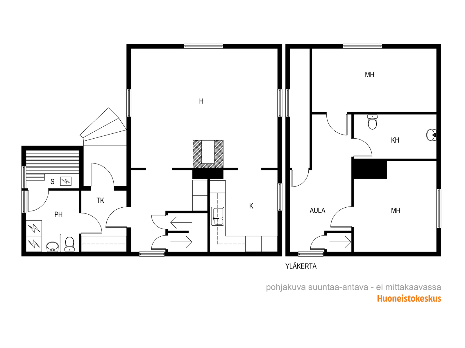 - Pinta-alatiedot on saatu rakennuspiirustuksista eikä niitä ole tarkistusmitattu, joten ne saattavat poiketa olennaisestikin nykymääräysten mukaan mitattavista pinta-aloista.