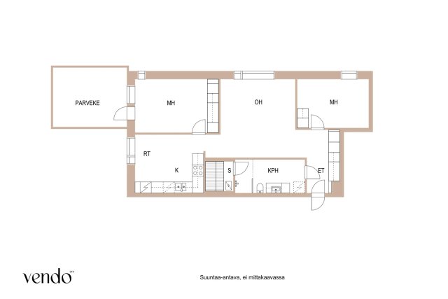 - Keittiökalusteet kodinkoneineen on uusittu vuonna 2025.