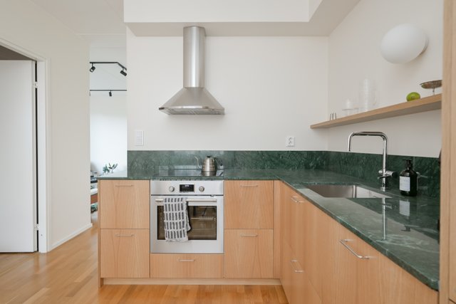 - Jääkaappipakastin (integroitu / kalustepeitteinen), erillisuuni, liesi, liesituuletin, ja astianpesukone (integroitu / kalustepeitteinen)