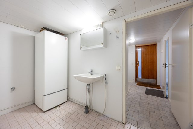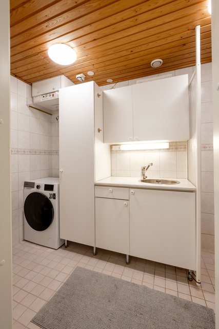 - Pesukoneliitäntä, pesuallas, lattiakaivo, tila pesutornille, ja lattialämmitys