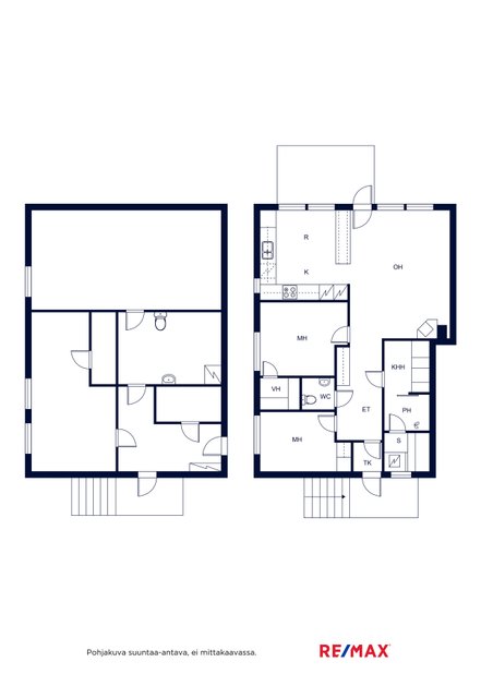 - Päämakuuhuoneessa on vaatehuone. Alakerran (69 m2) aputiloissa on lämmin varastohuone, kodinhoitotila ja wc, lämmin varastotila ja iso kylmä varastotila. Alakerran lämpimissä tiloissa on sähköinen lattialämmitys