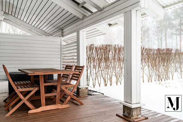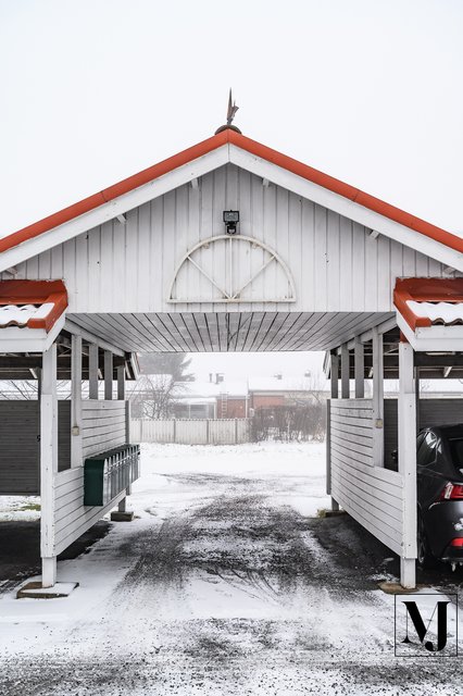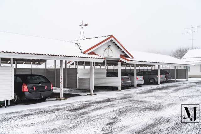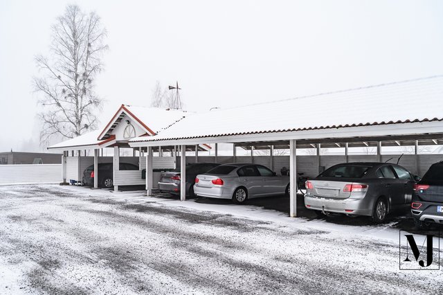 Autolle löytyy oma paikka katoksesta, joten ikkunoiden rappaaminen ja lumen harjaaminen aamuisin jää vähälle.