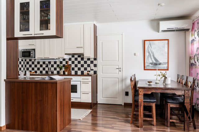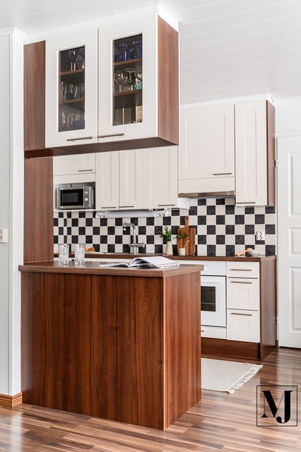 - Jääkaappipakastin, erillisuuni, astianpesukone, ja liesituuletin