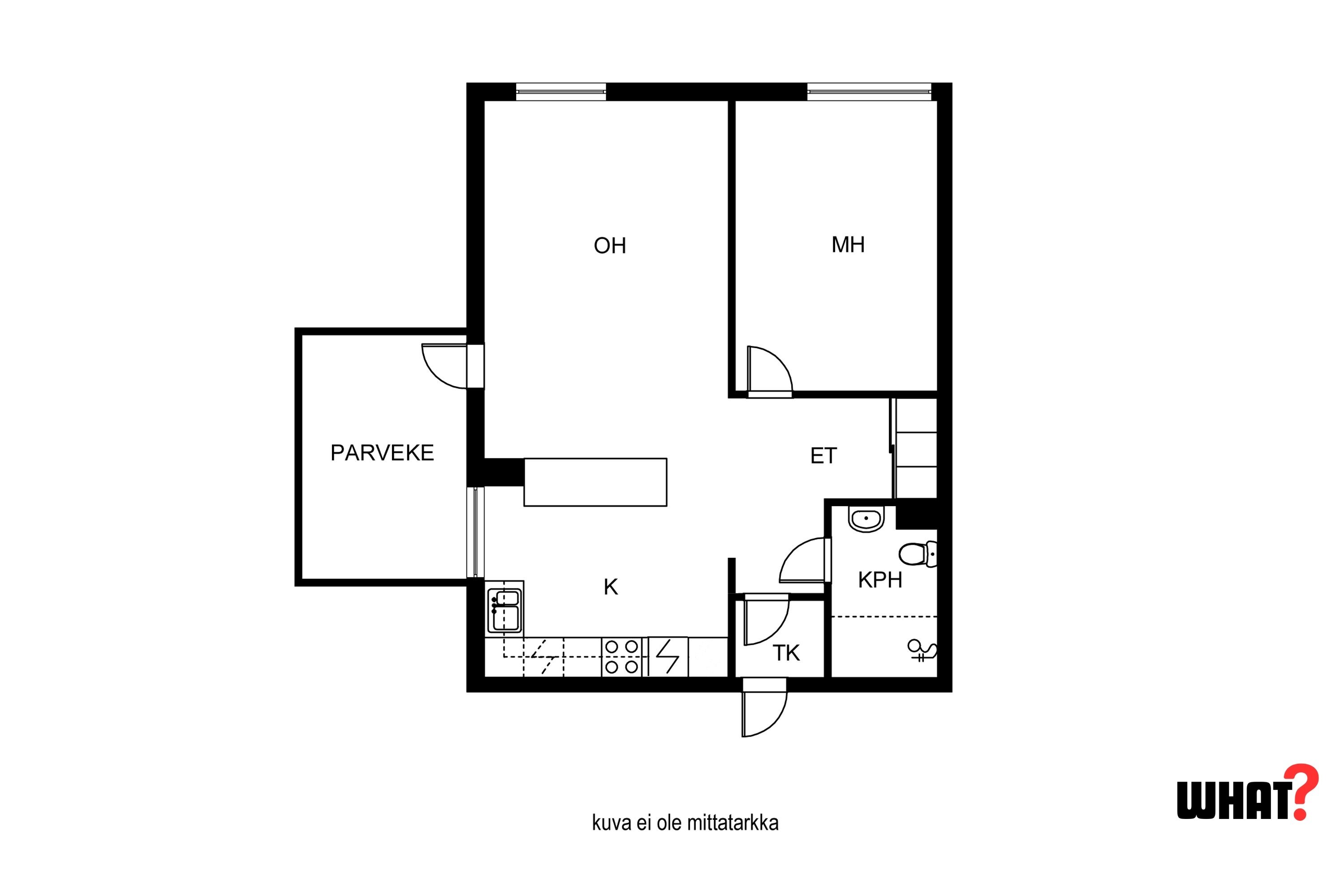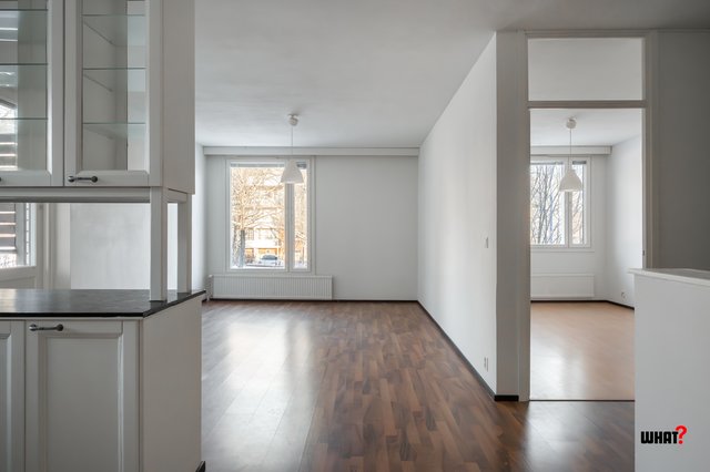 Olohuone on avara ja helposti kalustettava, ja keittiö tarjoaa hyvin tilaa ruoanlaittoon sekä arjen sujuvuuteen. Makuuhuoneeseen mahtuu niin suuri sänky kuin työpistekin. Kylpyhuone on siisti ja käytännöllinen.