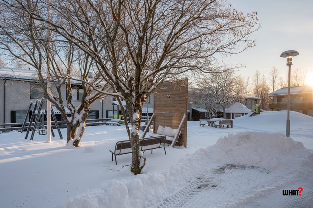 Taloyhtiön viihtyisä ja suojaisa sisäpiha tarjoaa mukavan ympäristön oleskeluun. Asukkaiden käytössä on myös yhteinen kota ja tilava lenkkisauna, jotka tuovat arkeen ylimääräistä viihtyvyyttä.