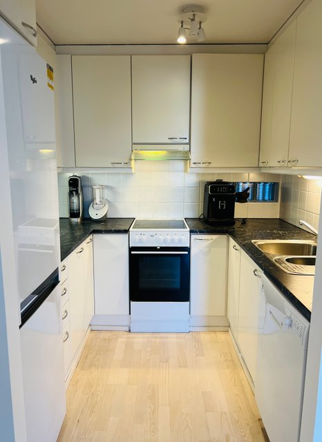 - Jääkaappipakastin, liesi, astianpesukone, ja liesituuletin