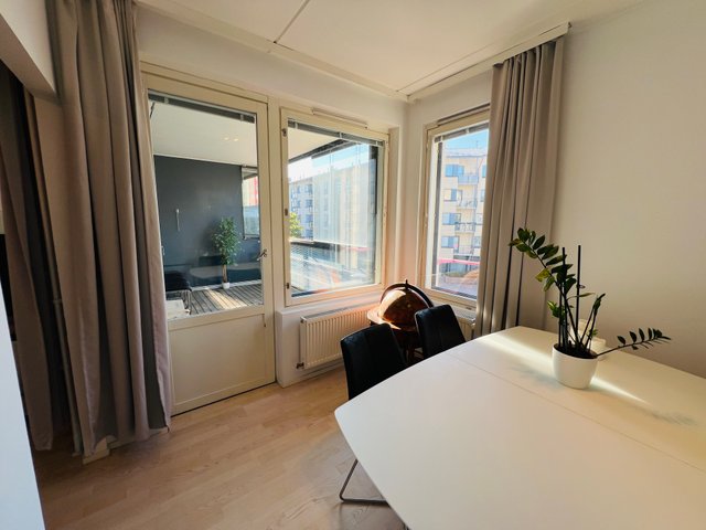 Siisti tehokolmio, jossa iso, lasitettu parveke ja sauna