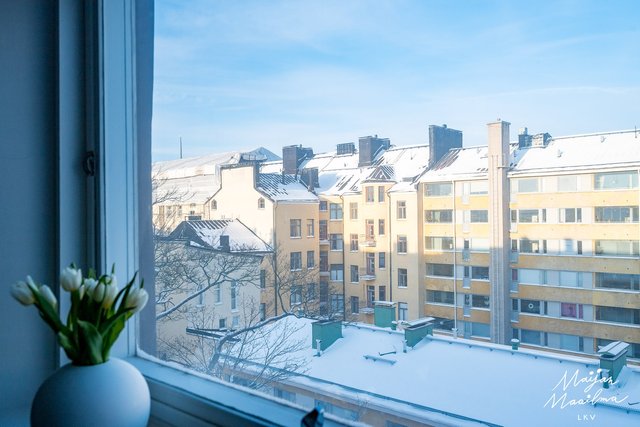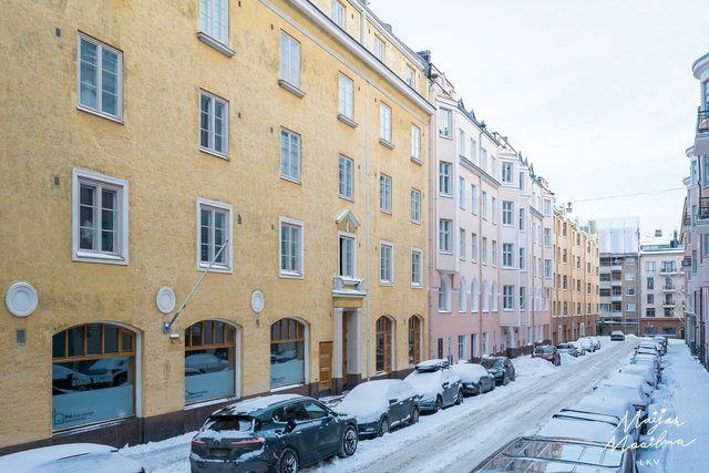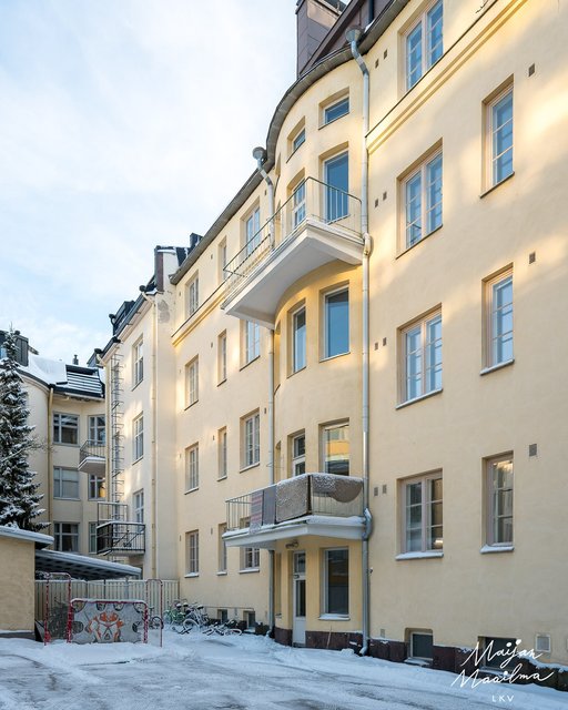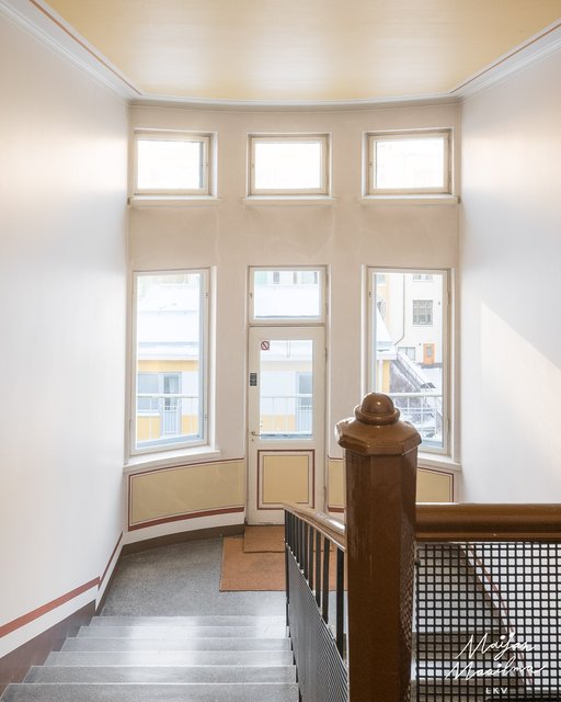 Asunto sijaitsee uljaassa vuonna 1926 valmistuneessa taloyhtiössä ja samaa 100 vuotta vanhaa arvokkuutta huokuvat taloyhtiön porrashuone, asunnon syvät ikkunalaudat, komea huonekorkeus (liki 3 metriä), vanhat puiset peiliovet ja ruutuikkunat. Säilytystilaa on runsaasti asunnon mittatilauksena toteutetuissa kaapistoissa, kiinteissä komeroissa ja yhtiön tarjoamassa lämpimässä verkkovarastossa, joita asuntoon kuuluu kaksi. Loistavalla suunnittelulla tiloihin on saatu luotua tilakäytöllisesti mahdollisimman tehokkaita ja sisustukseen saumattomasti sulautuvia ratkaisuja.