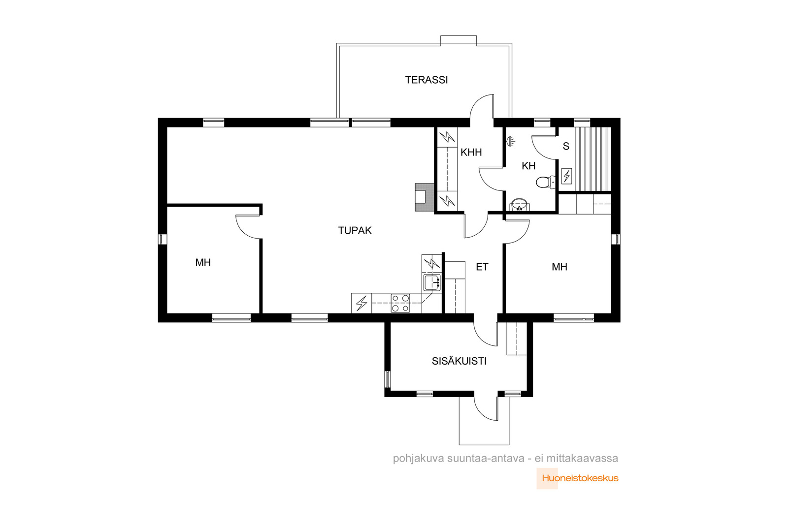 Tässä kodissa on todella käytännöllinen pohjaratkaisu. Kaikki huoneet ovat 1-tasossa ja keittiö ja olohuone ovat hienosti yhtenäistä tilaa. Täällä on korotettu vino kattoratkaisu, joten asunto tuntuu neliöitään isommalta. Makuuhuoneet ovat hyvänkokoiset ja myöskin kodinhoitohuone, kylpyhuone ja sauna samoin. Olohuoneen varaava takka tuo tunnelmaa ja lämmittää ihanasti talvipakkasilla. Tästä talosta löytyy myös poistoilmalämpöpumppu sekä ilmalämpöpumppu, joten asunnon sähkölasku on varsin maltillinen.