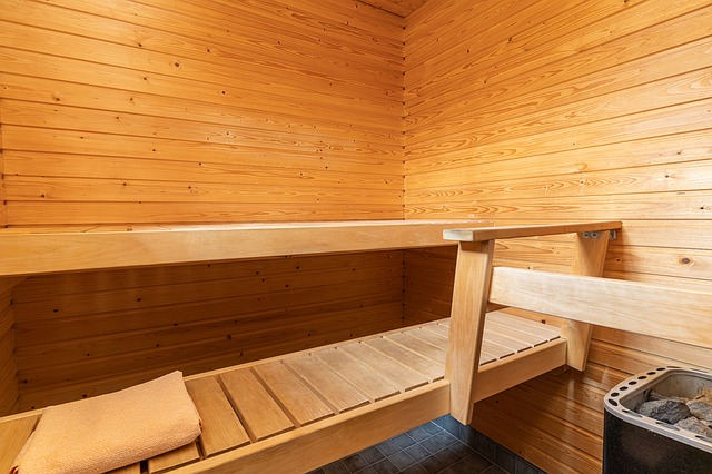 - Hyvänkokoinen sauna, jossa seinät paneloitu, lattia laatoitettu, puulauteet. Sähkökiuas.