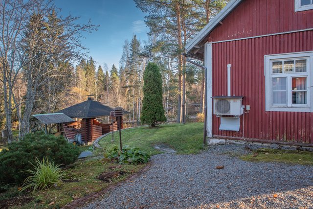 - Vanha rakennus (rak. alkuperäinen noin 1930-l ja todennäköisesti laajennus noin v. 1946 kiinteistöverotuksen mukaan) mitat pituus 14,4m ja leveys 5,7 m. Alkuperäinen osa hirsirunkoinen, laajennus puurunko ja purueriste, alapohja tuulettuva peruskivien päällä. Vesikatto huopakatto, joka uusittu 1990-luvulla. Rakennuksessa ollut aina peruslämpö, lämmityksenä molemmissa päissä ilmalämpöpumput sekä puu-uunit. Ei tule vettä eikä mene. Kunto remonttia vaativa. hirsinen grillikatos ja sen alla maakellari.