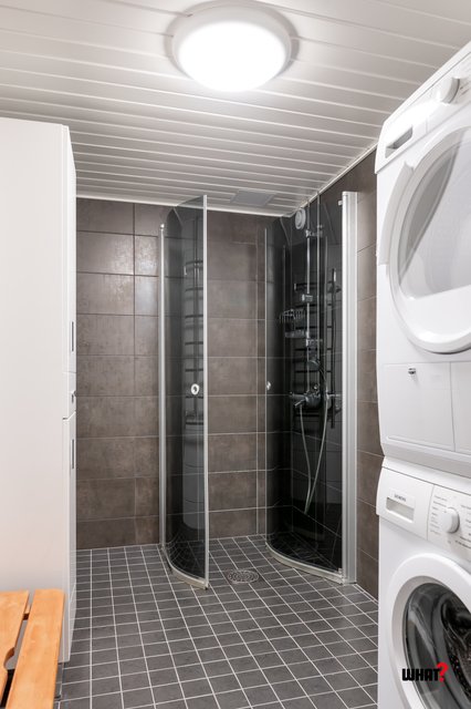 - Suihku, pesukoneliitäntä, lattialämmitys, ja suihkuseinä