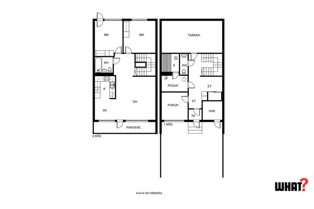 Tk, et, 3 mh, th, 2 x kph, wc, k, s, las. parv, lämmin var.