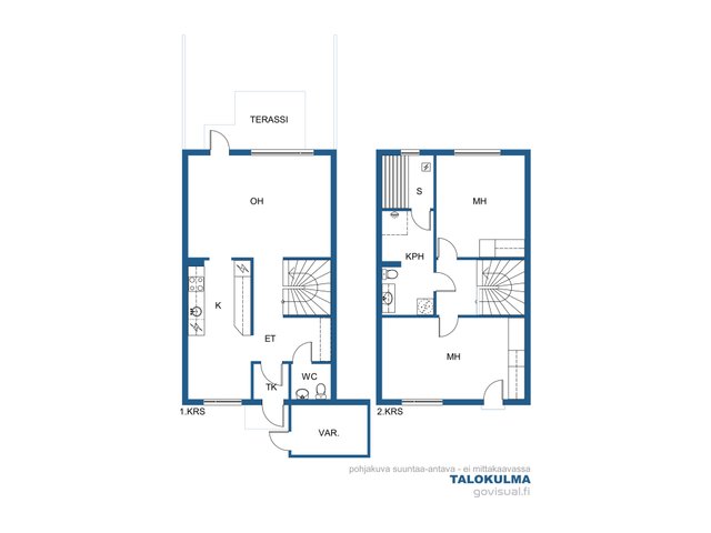 - Alakerrassa erillinen wc. Myös yläkerrassa wc kylpyhuoneen yhteydessä.