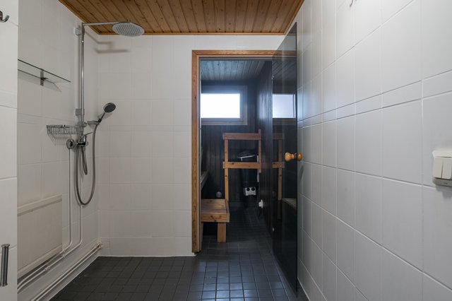 - Iso ja avara, laatoitettu kylpyhuone jonka yhteydessä oma sauna. Pesukone mahtuu tilaan helposti.