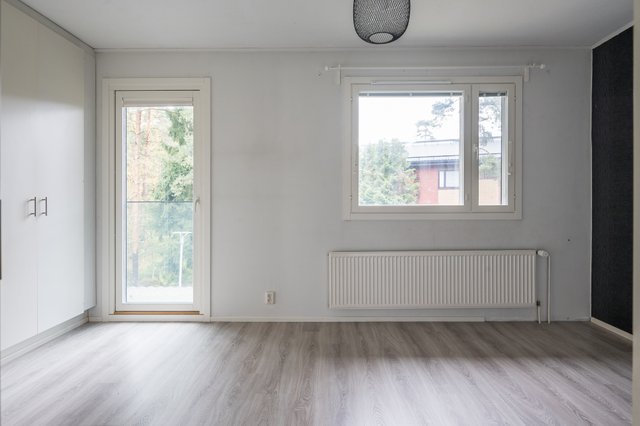 - Iso ja avara olohuone josta kulku huoneiston takapihalle.
