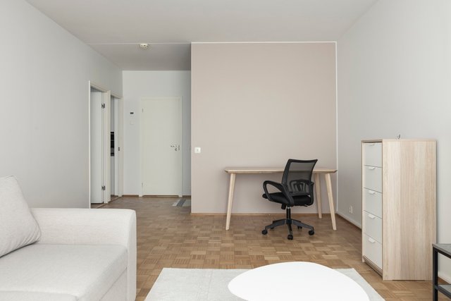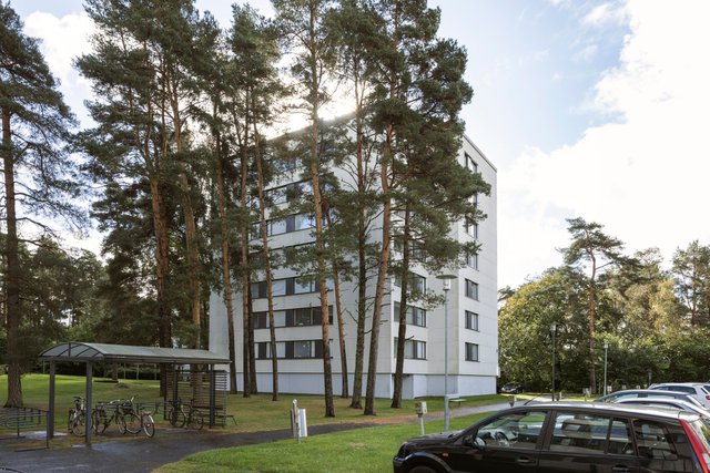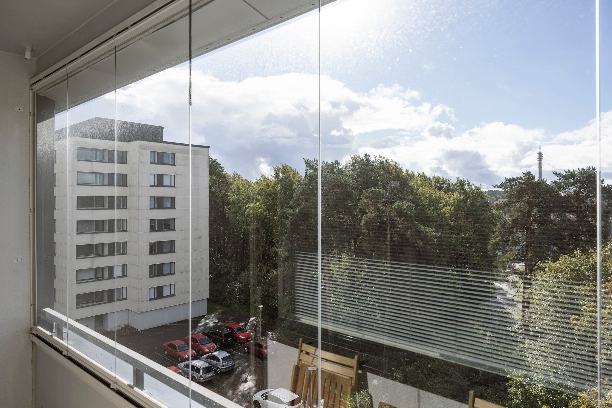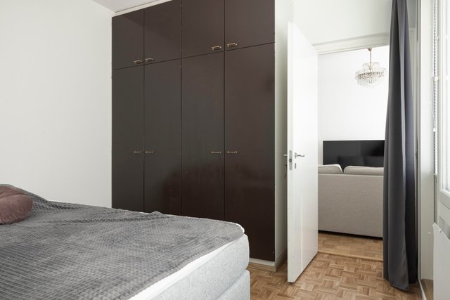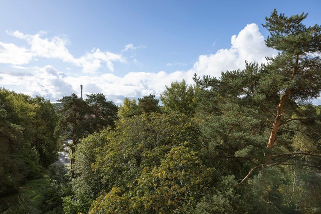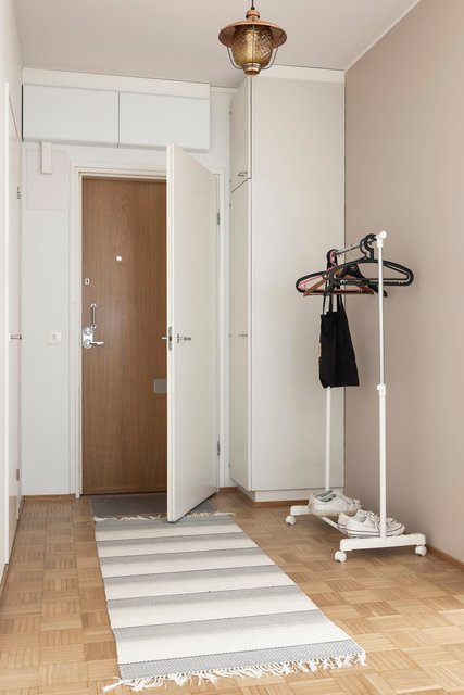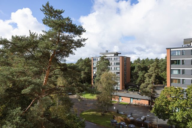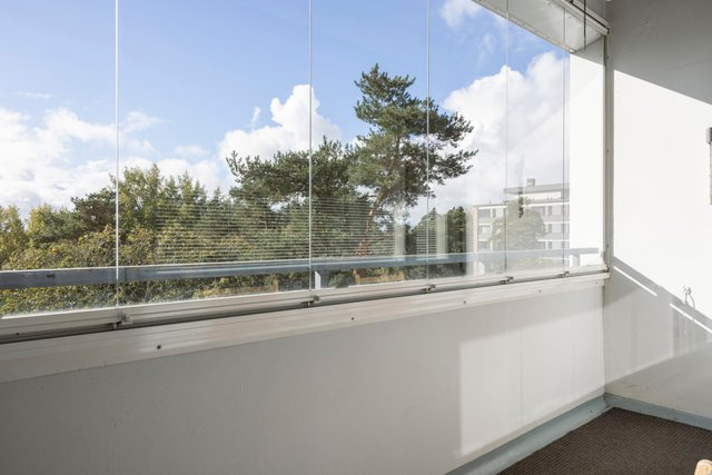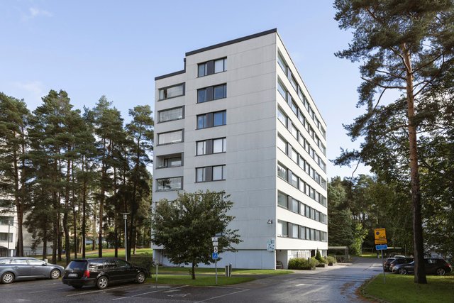 Myytävä huoneisto käsittää vaaleasävyisen keittiön, jossa runsaasti säilytystilaa, tyylikkään ja kompaktin kylpyhuoneen, isomman ja pienemmän makuuhuoneen, vaatehuoneen sekä tilavan ja valoisan olohuoneen. Olohuoneesta on kulku lasitetulle parvekkeelle, josta aukeaa ihanan rauhalliset näkymät puiden yli.