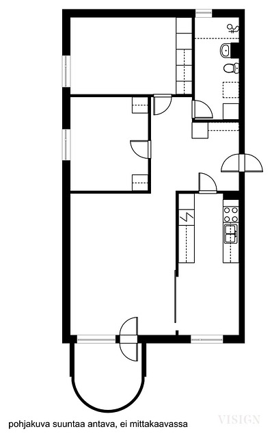 - Ei tarkistusmitattu. Pinta-alat saattavat tämän ikäisissä kohteissa (rekisteröity ennen 1.1.1992) poiketa olennaisestikin asuinrakennusten nykyisten mittaustapojen ja standardien (SFS 5139) mukaan laskettavasta asuintilojen pinta-alasta. Pinta-ala voi siis olla edellä mainittua pienempi tai suurempi. Jyvitetty pinta-ala on 71,9 m2.