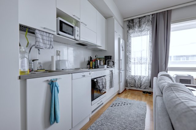 - Astianpesukone (45 cm leveä), liesi, liesituuletin, jääkaappipakastin, ja erillisuuni