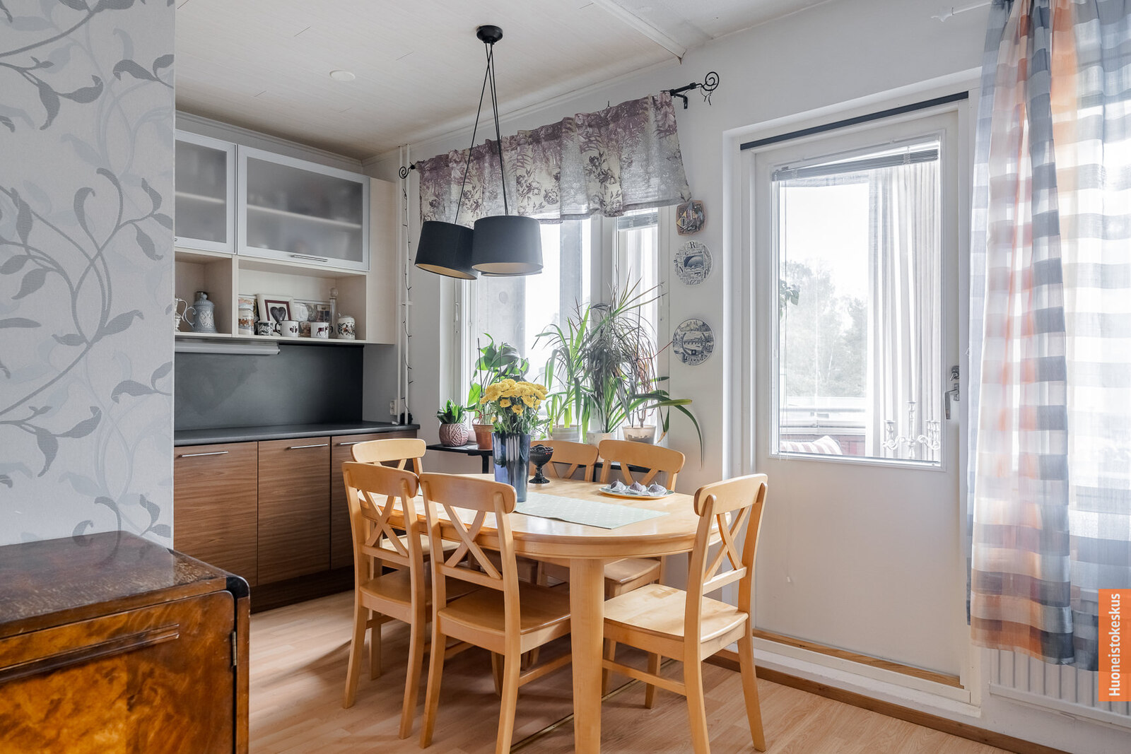 Sijainti on ihanteellinen: päättyvän tien varrella. Takapihalta pääset suoraan lenkkipoluille, ja arjen sujuvuutta lisäävät kävelyetäisyydellä sijaitseva lähikauppa sekä vain reilun sadan metrin päässä oleva bussipysäkki.