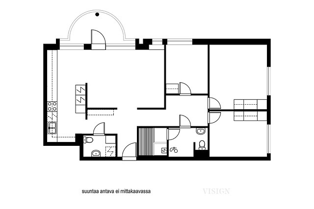 - Huoneiston asuinpinta-ala on yhtiöjärjestyksen mukaan 88,5 m². Edellä mainittu pinta-ala saattaa tämän ikäisessä kohteessa poiketa olennaisestikin huoneiston nykyisten mittaustapojen ja standardien mukaan laskettavasta pinta-alasta. Huoneiston todellinen asuinpinta-ala voi siis olla yhtiöjärjestyksessä, isännöitsijäntodistuksessa ja esitteessä mainittua pienempi tai suurempi.