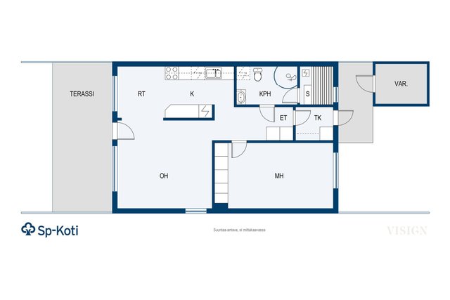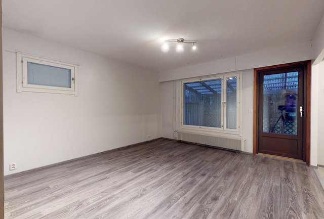 Kun astut sisään tähän kotiin, huomaat heti, että kaikki on viihtyisäksi ja kotoisaksi. Valoisa olohuone kutsuu viihtymään, ja olohuoneesta voit astua suoraan omalle terassille.