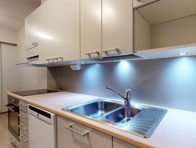 Keittiö on remontoitu moderniksi ja varustettu laadukkailla kodinkoneilla, jotka tekevät ruoanlaitosta vaivatonta. Myös pesutilat on uudistettu – lattialämmitys, kauniit kaakelit ja oma sauna tuovat ripauksen luksusta arkeen. Täällä on helppo rentoutua pitkän päivän jälkeen.