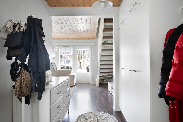 - Eteisessä maalatut seinät ja laminaattilattia. Tuulikaapissa maalatut seinät ja muovimatto. Vaatehuoneessa maalatut seinät ja lautalattia. Yläkerrassa ranskalainen parveke.