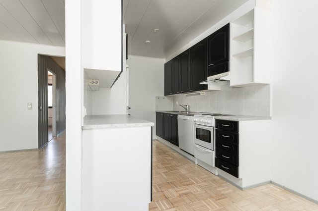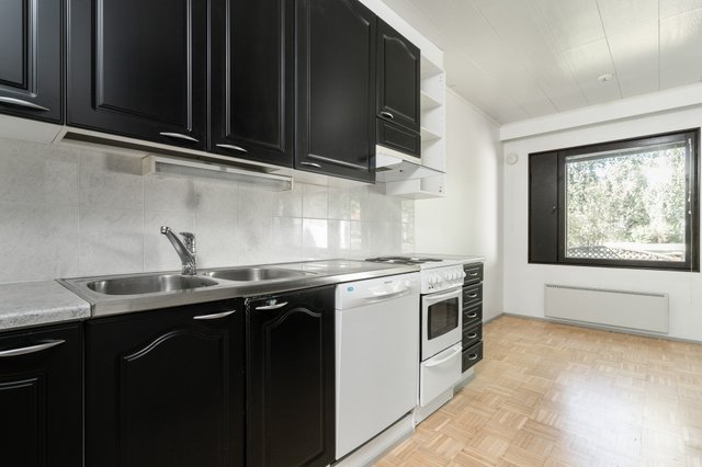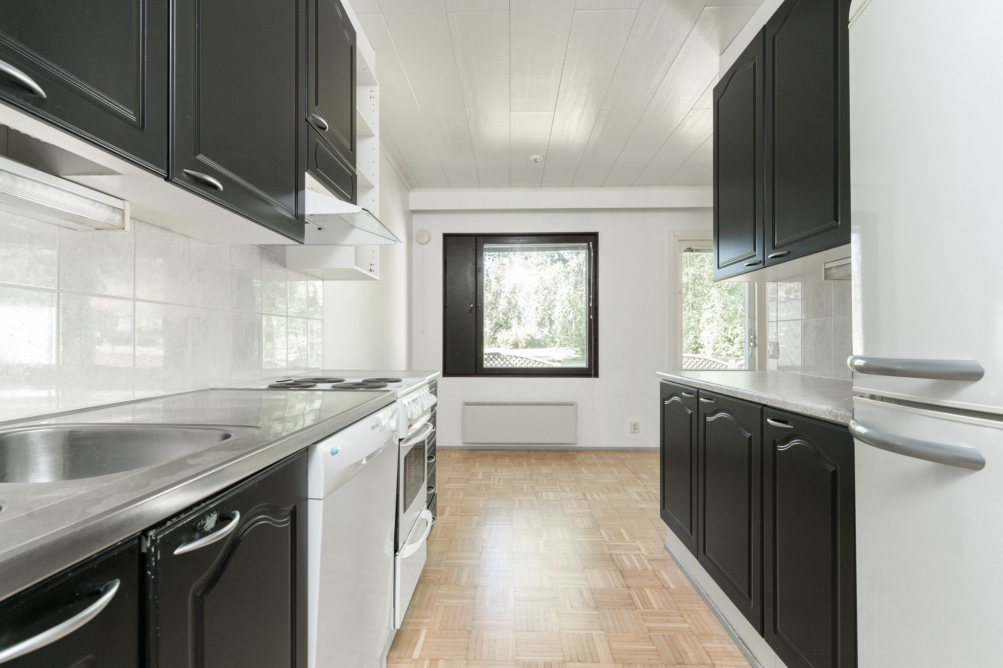 - Keittiö uusittu 2004. Keittiön kaapin ovet maalautettu 2021. Varusteet: Jääkaappipakastin, astianpesukone (2017), liesi ja liesituuletin Seinämateriaalit: Tapetti Lattiamateriaalit: Parketti Liesi: Induktioliesi Työtasot: Laminaatti