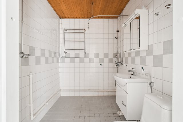 - Pesukoneliitäntä, allaskaappi, bidee-suihku, pesuallas, pyyhekuivain, suihku, ja wc-istuin