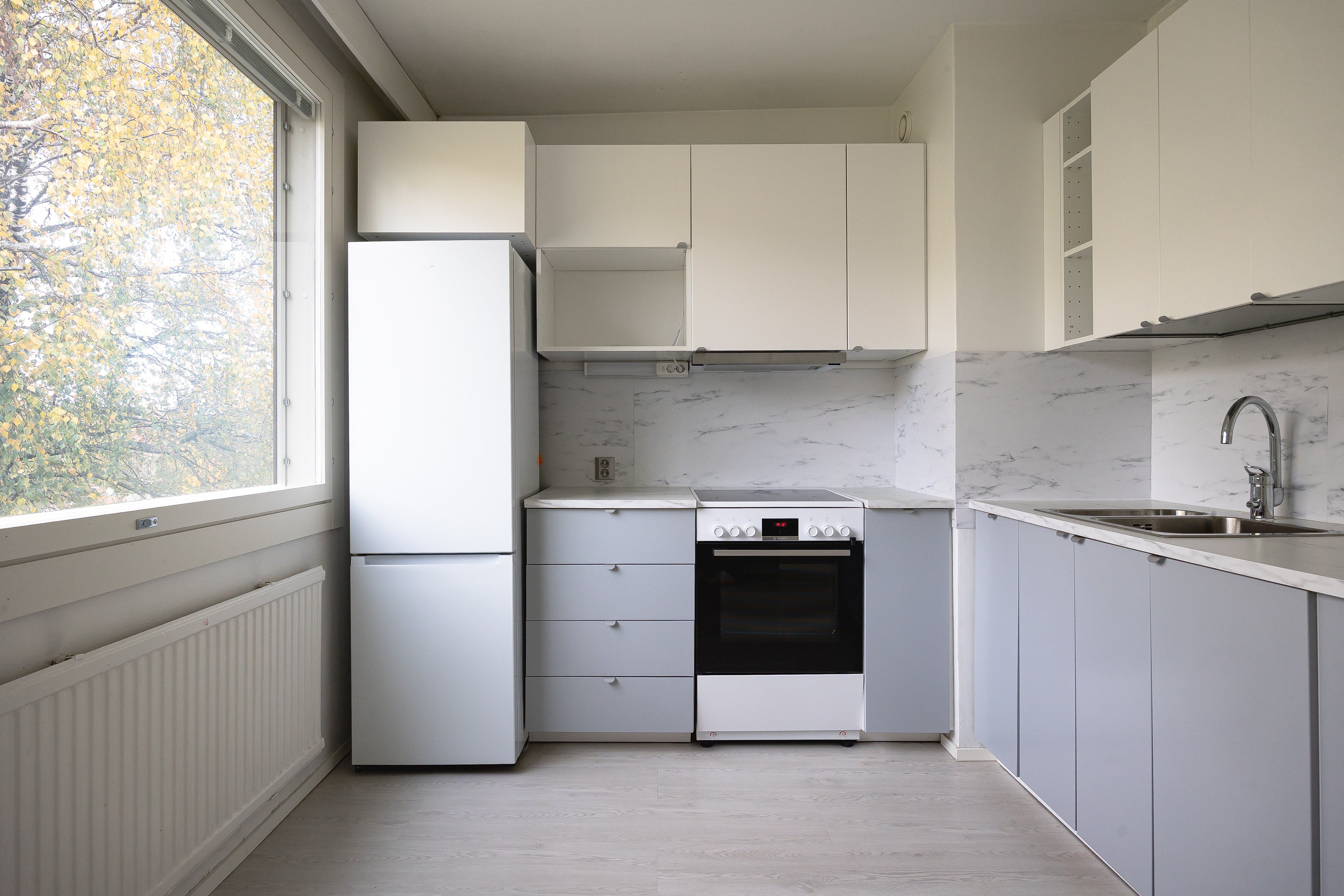 - Keittiö uusittu vuonna 2021. VARUSTUS: Kaapistot, jääkaappi/pakastin, keraaminen liesi, liesituuletin, astianpesukone, pesuallas, hana. SEINÄT: Maalattu. LATTIA: Vinyyli.