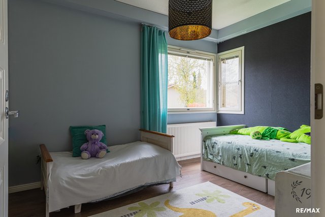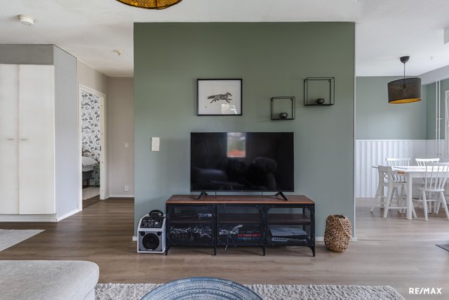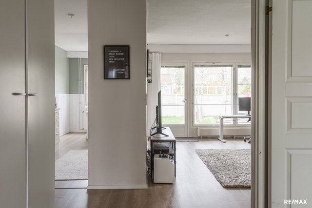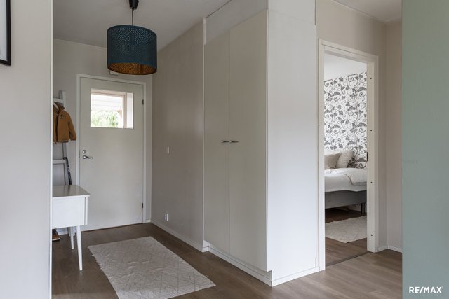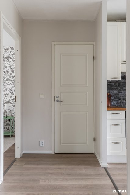 - Keittiössä, olohuoneessa ja eteisessä on vinyylilankku (asennettu keväällä 2024), makuuhuoneissa laminaatti.
