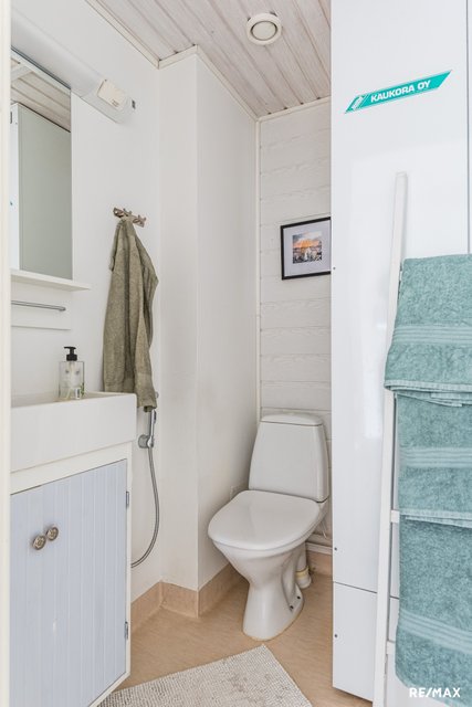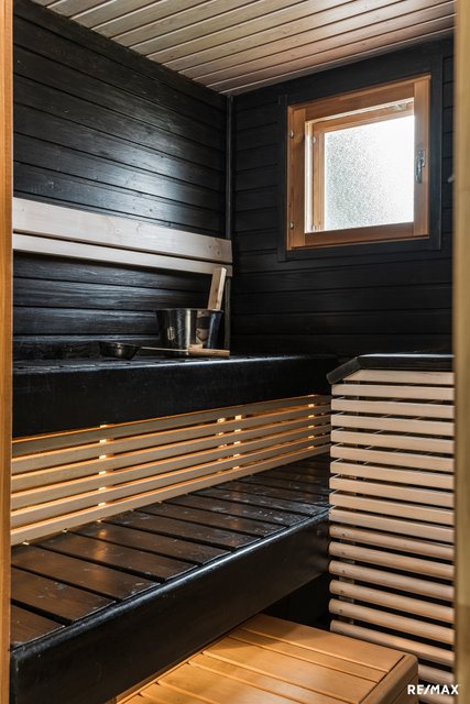 - Tilava kylpyhuone on remontoitu 2016 ja on edelleen siistissä kunnossa. Saunassa on Kota-merkkinen tornikiuas ja sieltä on ikkuna ulos omalle pihalle.
