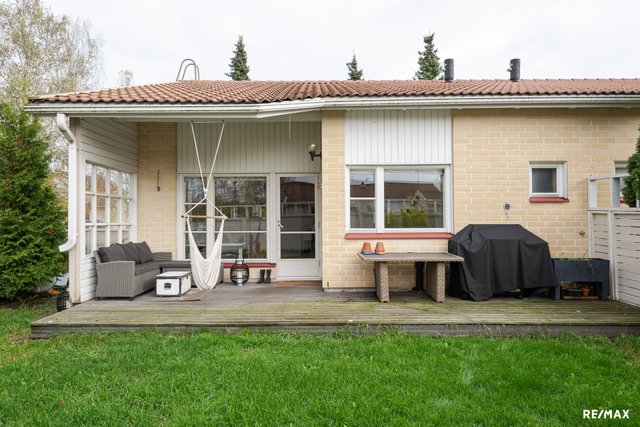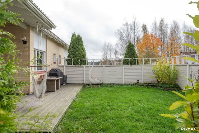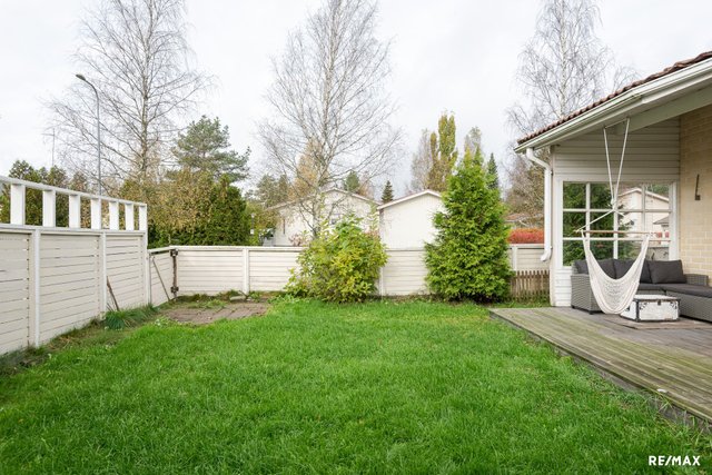 - Oma noin 94 neliön kokoinen nurmipiha, jota kiertää puuaita. Puuaidassa on pari heikkokuntoista lautaa, joiden vaihtamiseen voi saada taloyhtiöltä korjaustarpeet. Piha avautuu etelään ja aurinko paistaa sinne lähes koko päivän.