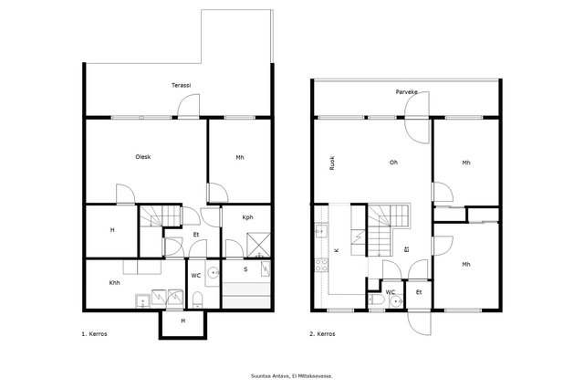Kahteen kerrokseen jakautuvat tilat tarjoavat toimivuutta ja joustavuutta, jossa yläkerta kokoaa perheen yhteen ja alakerta antaa jokaiselle rauhaa ja omaa tilaa. Molemmissa kerroksissa on kätevästi oma sisäänkäyntinsä.