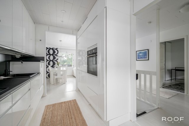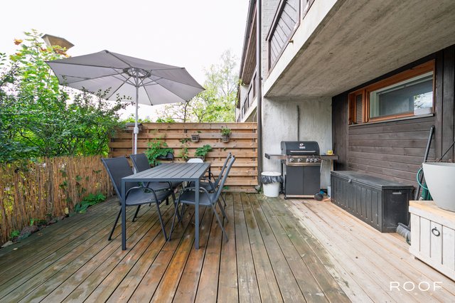 Yläkerrassa sijaitsevat 2021 uusittu keittiö ja ruokailutila, olohuone parvekkeineen, kaksi makuuhuonetta sekä erillinen wc. Uusitun keittiön modernit ratkaisut tekevät arjesta sujuvaa ja viihtyisää. Alakerrasta löytyvät kaksi makuuhuonetta, kodinhoitohuone, kylpyhuone, oma sauna ja erillinen wc. Asunnossa on monipuolisesti säilytystilaa sekä kruununa suojaisa piha osittain katettuine terasseineen.