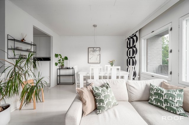 Vuonna 2021 pintaremontoitu rivitaloasunto hurmaa selkeällä pohjaratkaisullaan ja tyylikkäällä ilmeellään.