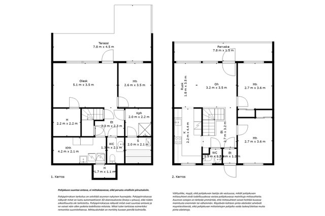 - Huoneiston pinta-ala on yhtiöjärjestyksen, isännöitsijäntodistuksen ja myyjän ilmoituksen mukaan 122 m2. Pinta-alaa ei ole tarkistusmitattu. Edellä mainittu pinta-ala saattaa tämän ikäisessä kohteessa poiketa olennaisestikin huoneiston nykyisen ja rakentamisaikaisen mittaustapojen ja standardien mukaan laskettavasta pinta-alasta. Huoneiston todellinen pinta-ala voi siis olla yhtiöjärjestyksessä, isännöitsijäntodistuksessa ja esitteessä mainittua pienempi tai suurempi.