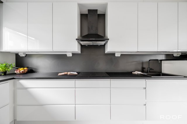 - Pesukoneliitäntä, kylmäkaappi, pesuallas, ja pöytätaso
