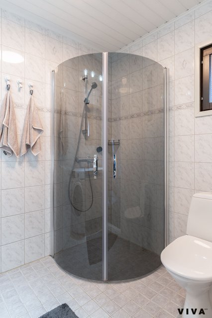 - Suihku, wc-istuin, suihkuseinä, ja lattialämmitys